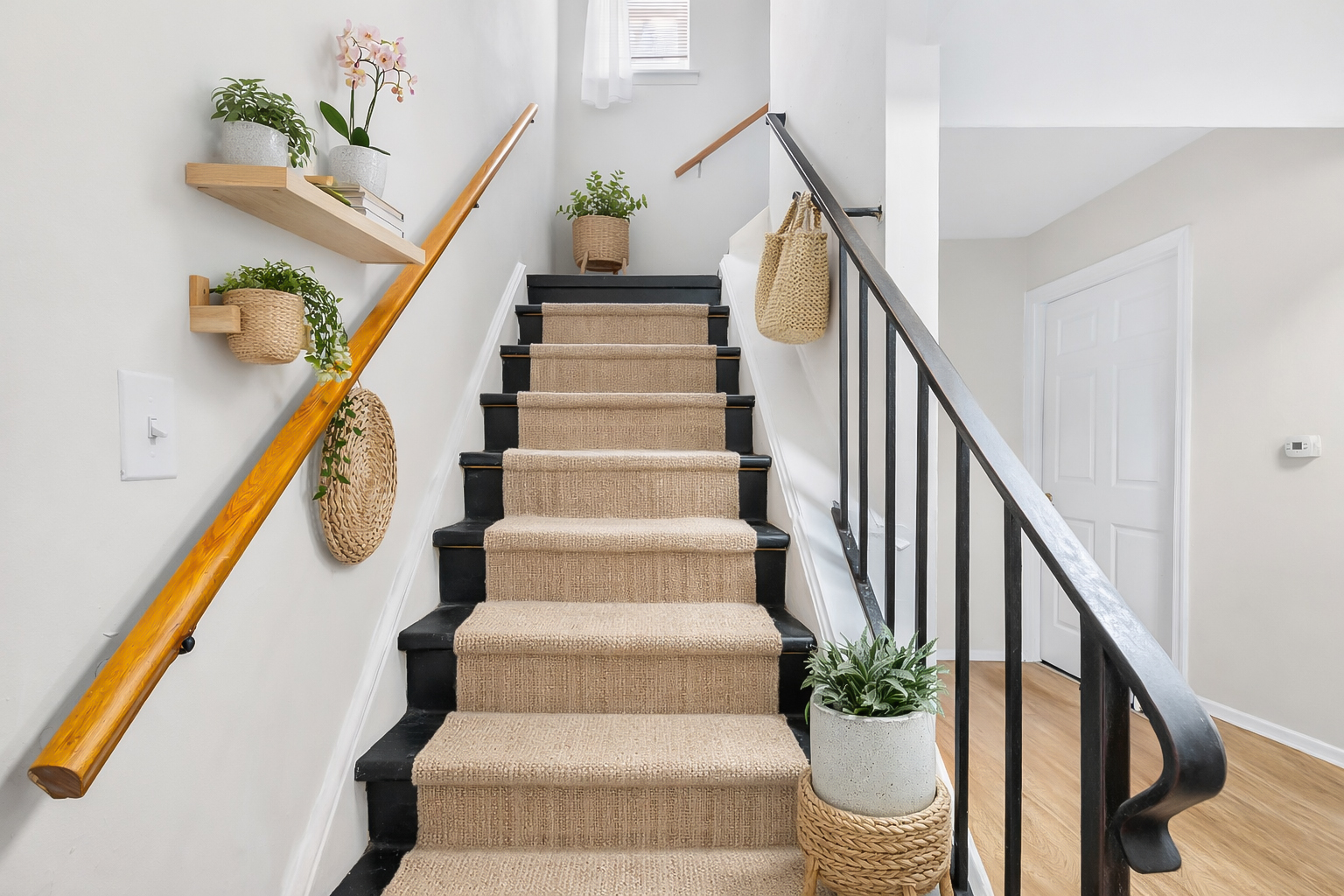 Beautiful Staircase to upstairs living at Delmont Plaza Apartments